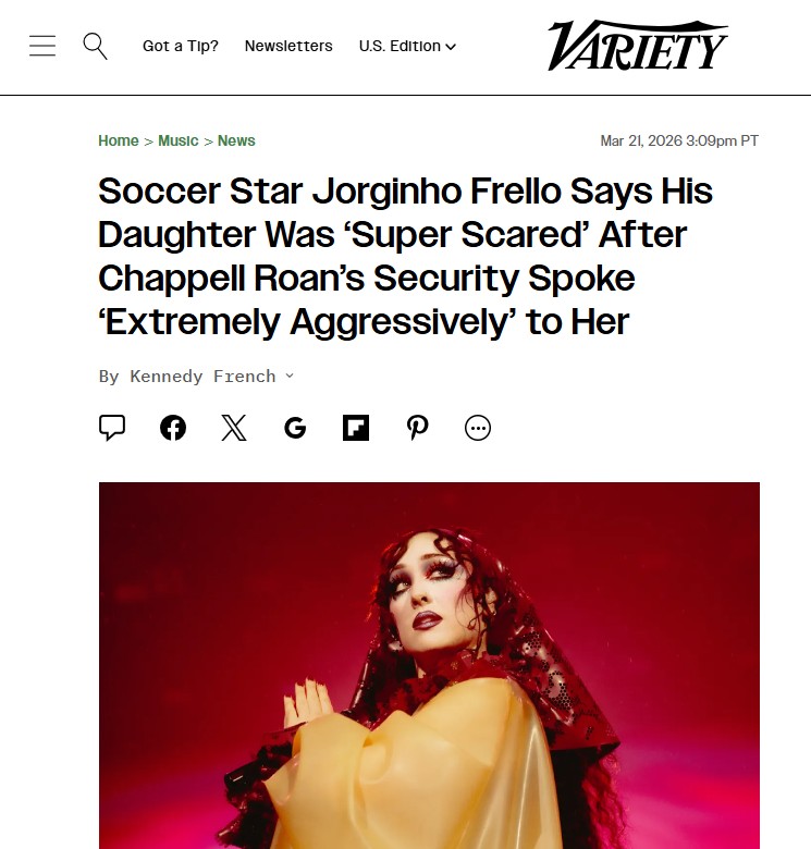 A imprensa internacional repercutiu neste sábado (21) a confusão envolvendo o jogador Jorginho, do Flamengo, e a cantora Chappell Roan, ocorrida em um hotel de São Paulo (SP). O atleta criticou a postura da equipe da artista — headliner do Lollapalooza Brasil — após, segundo ele, integrantes do equipe destratarem a filha de 11 anos.