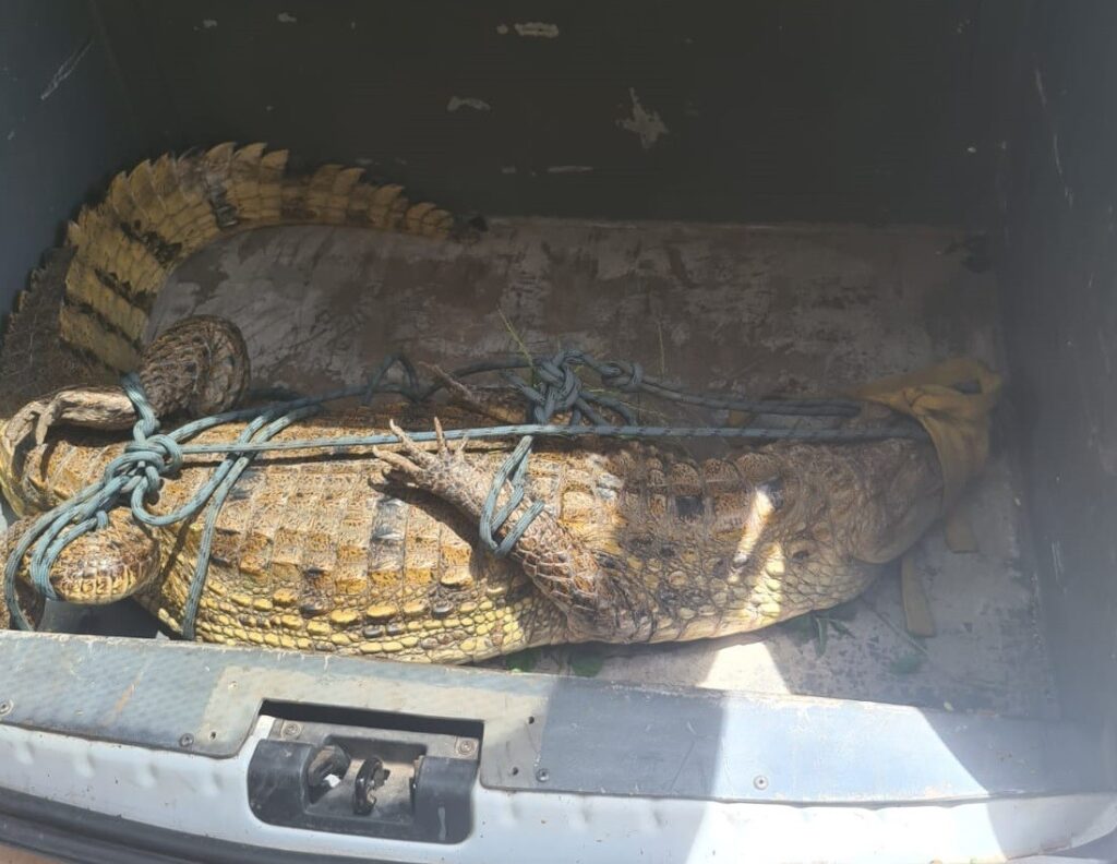 A apreensão desta sexta-feira aconteceu próxima ao refeitório. Foi necessário pela corporação o uso de cordas para imobilizar o jacaré. A equipe dos Bombeiros precisou de três militares na ação: oficial capitão Wanderson e os resgateiros cabo Reis e aluno a cabo Marcelo.